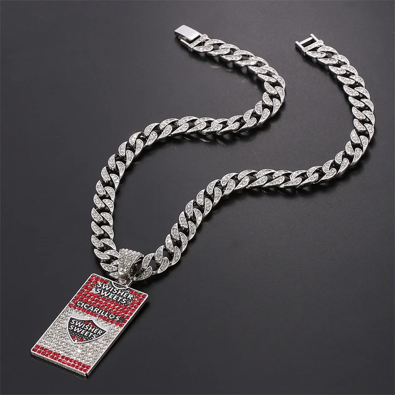 Schild Brief Swisher Sweets Manner Schmuck Metall Kuba Kette Halsketten Hip Hop Platz Voller Strass Mode Schmuck Geschenk Anhanger Halsketten Aliexpress